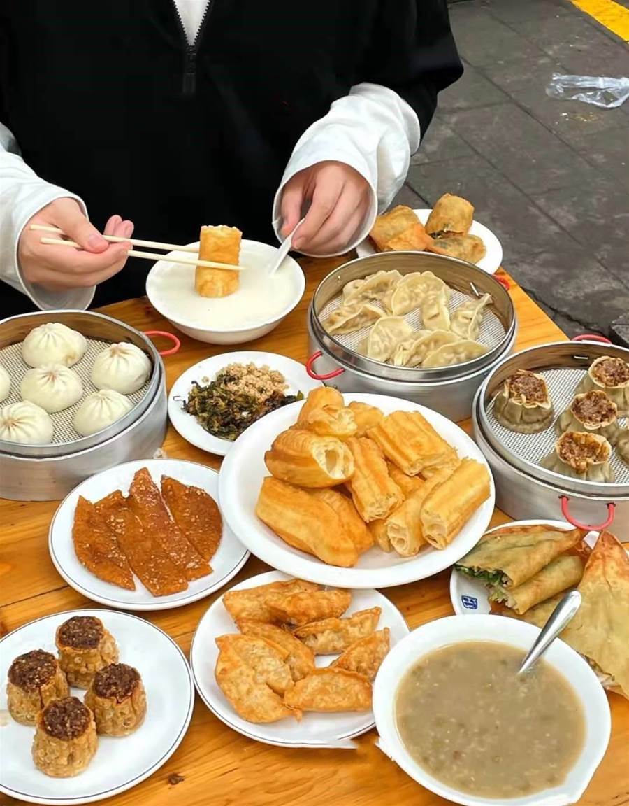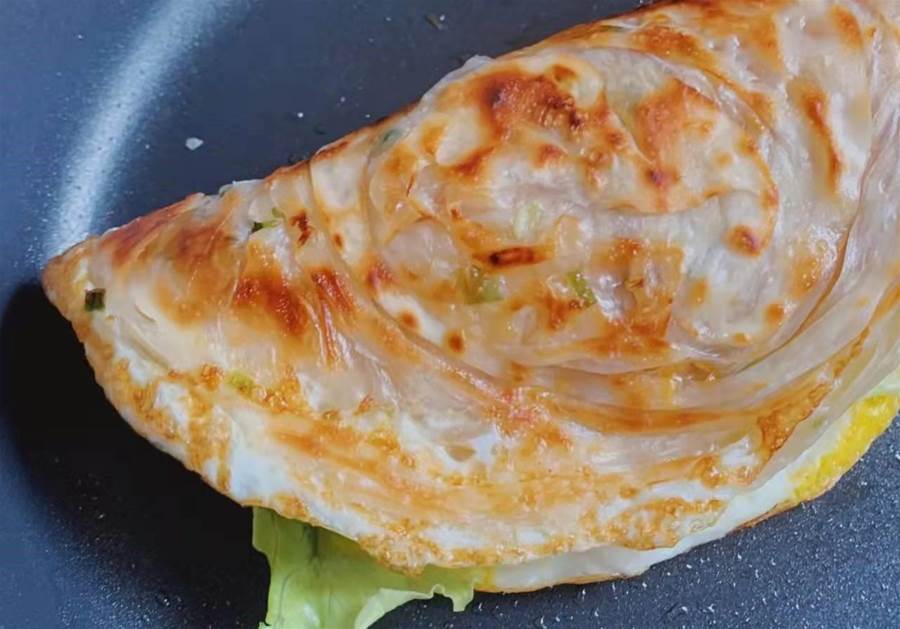 早餐攤上的手抓餅,千層百疊,層層纖薄如紙,外酥裡嫩。卷上火腿腸,雞蛋,生菜,抹點醬,這簡直就是美味佳餚。不僅是早餐,就連在夜市上,它都是很搶手的食物。